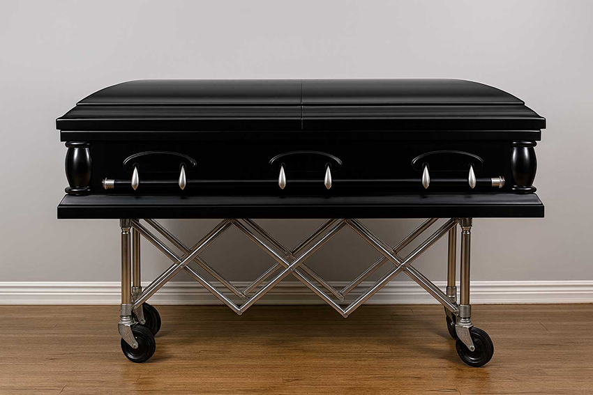 Premium scissor trolley models are equipped with additional aesthetic elements such as gold-plated or silver-plated handle finishes, decorative legs, or more refined folding mechanisms. Some funeral homes also invest in sets consisting of a trolley and dedicated premium drape with fringe, creating a cohesive visual composition during ceremonies.