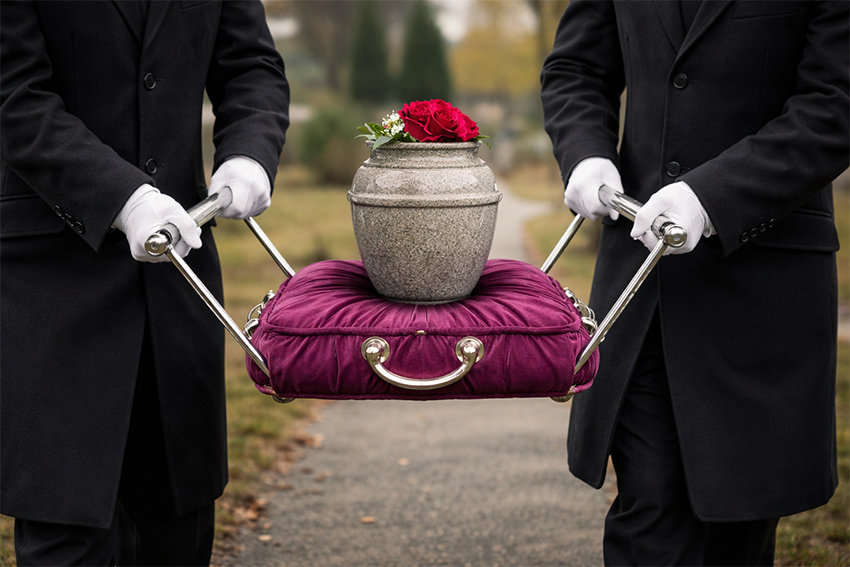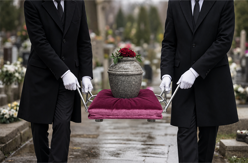 In funeral ritual, every object carries symbolic weight. The coffin communicates rest and accompaniment. The urn – smaller, more concentrated, almost intimate – holds the entire presence of the person who has died. Every action taken around it, including the simple act of carrying it, therefore carries ceremonial significance that goes well beyond logistics. An urn is not a package to be moved from A to B. It is a physical symbol of memory, the last tangible trace of a person's life.
